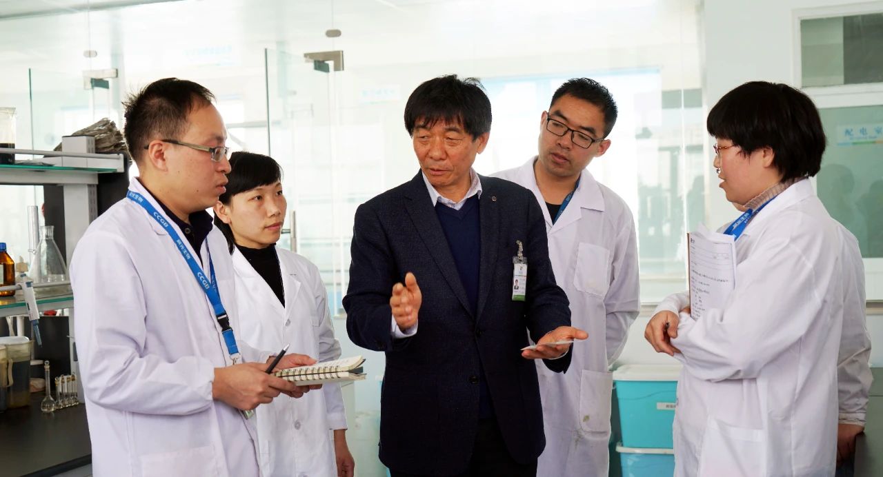 圖:盧慶國在水飛薊素生產(chǎn)線指導(dǎo)生產(chǎn)